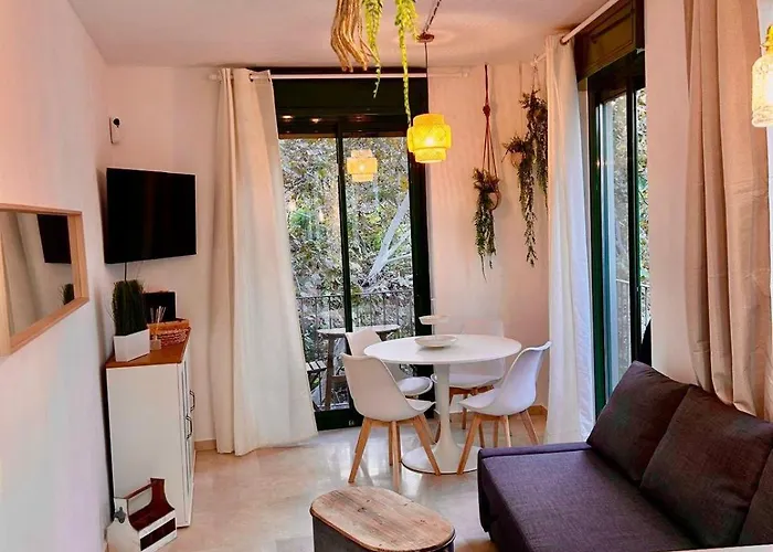 Appartement Barcelona Raval de 60 m² est niché au centre de Barcelone et à seulement 1 km de la maison Batlló. Situé près de La Rambla, l'appartement avec une terrasse surplombe le jardin.